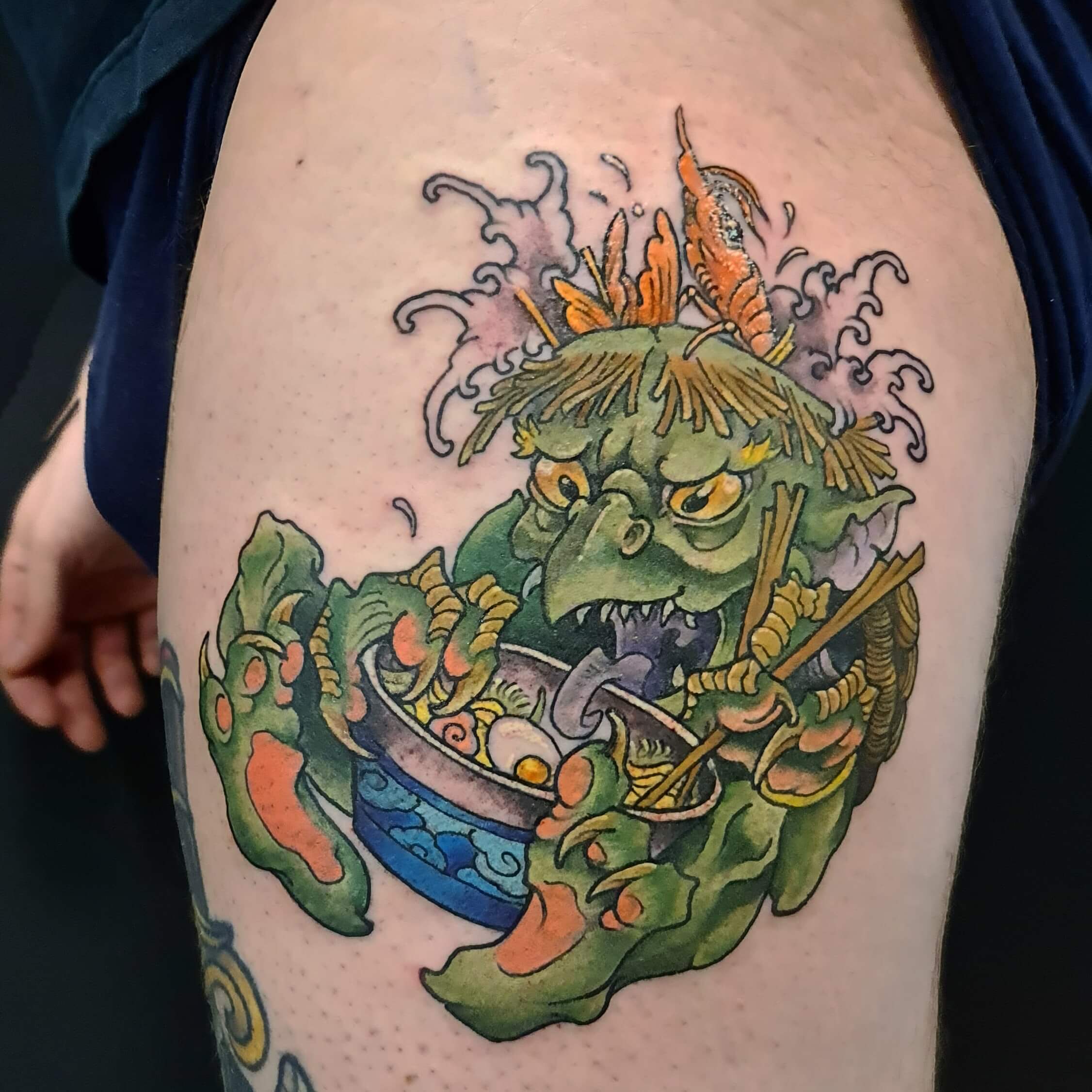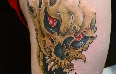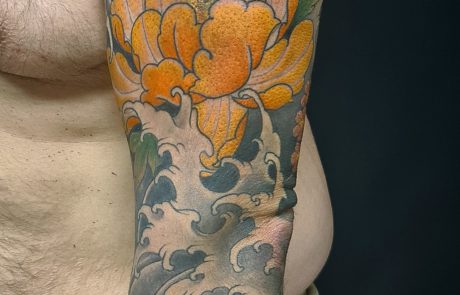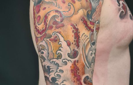 Richard dit Uncle_ho, possède une expérience de 20 années dans le Street art. Passer de l’univers urbain à l’intimité du corps ne lui a pas posé de problème. Le tatouage japonais néo-traditionnel est proche du graffiti de par la composition, la dynamique des couleurs et le travail sur différents plans. Un ensemble qui crée des compositions riches en détails et en mouvements. Le tatoueur néo-japonais aime s’exprimer sur de grandes surfaces. Ce style de tattoo permet de tatouer de grands motifs à la construction complexe. Richard affirme qu' »un bon tatouage est lisible à 3 mètres, il doit être propre et tenir dans le temps ». La street culture nourrit encore son art tout comme les comics et les estampes. Ces multiples influences créent sa propre identité graphique, colorée et équilibrée.
