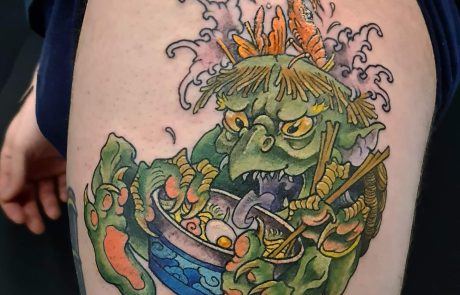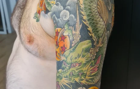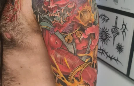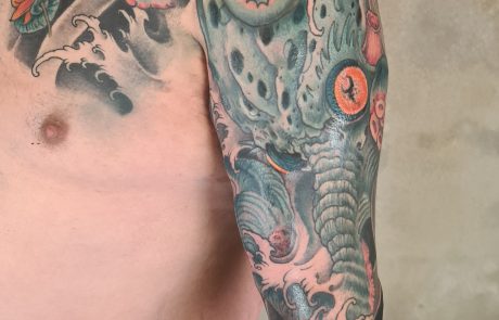 Le tatouage néo-japonais est un style de tatouage qui mélange des éléments de la culture japonaise traditionnelle et contemporaine. Le tatoueur néo-japonais s’approprie et interprète le tatouage japonais traditionnel avec des codes résolument modernes. La composition du tatouage intègre de nombreux détails ou références personnelles pour créer un design unique. Faites réaliser votre tatouage néo-japonais à Strasbourg, au salon de tatouage Neon Cobra près de la gare. Richard dit Uncle_ho, tatoueur au style néo-japonais, vous accueille pour étudier votre projet. Richard vous proposera des créations personnelles, vibrantes et colorées.